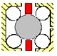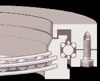 The above picture shows a typical 3-part housing which is suitable to carry both radial and axial loads in nearly equal proportions. The cross section in this case is uniform and thus has a contact angle of 45 degrees. This angle can be reduced to form a rectangular cross section and thus change the load carrying characteristics for example to sustain more axial and less radial loads.